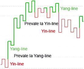 La costruzione delle linee è molto semplice, per prima cosa si stabilisce un ammontare di prezzo, in percentuale o in valore assoluto. Se dal primo prezzo la variazione risulta maggiore o uguale alla quantità di prezzo stabilito il grafico plotterà una linea spessa chiamata yang-line, se la variazione è negativa, dell'ammontare stabilito, la linea risulterà sottile e prende il nome di yin-line. I nomi yang e yin, di chiara tradizione orientale, esprimono molto bene la contrapposizione tra le spinte rialziste e quelle ribassiste che creano infinite battaglie nei prezzi.