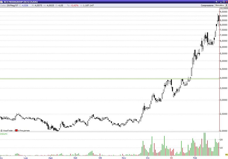 Tuttavia liquidai Tiscali con una performance strepitosa e passai ad altro. Comperai un bellissimo attico in centro a Rimini e ridussi di molto l’operatività anche perché il mercato dava segni di forte debolezza. Mi ripromisi una nuova vacanza a gennaio 2000 e questa volta mi ero convinto veramente a rispettare il mio impegno, niente trading! O almeno così credevo perché erano 6 mesi che aspettavo al varco il titolo HDP (ora RCS) sopra 1.05 (valore rettificato ora privo di senso) e mai mi sarei aspettato che la rottura avvenisse proprio mentre stavo sciando, che destino avverso! Immaginate la scena, suona il telefono “rosso” quello delle emergenze e il mio amico Vittorio mi dice: ”HDP ha rotto è a 1.06.” Mi misi a bordo pista e comperai la bellezza di 100.000€ di covered warrant su HDP, base e scadenza erano stati selezionati precedentemente. Ebbene, ancora ricordo lo sguardo carico di disapprovazione della mia ragazza ma il giorno dopo avevo già guadagnato oltre 30.000€, il titolo era schizzato in su.