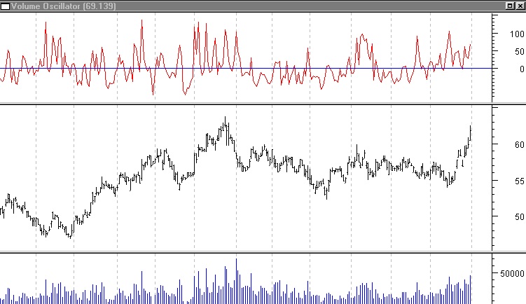 Indicatore analogo al Price Oscillator con la sola differenza che le medie vengono calcolate sul volume e non sul prezzo. Si costruisce calcolando la differenza tra una media mobile di breve ed una di un periodo più lungo.
